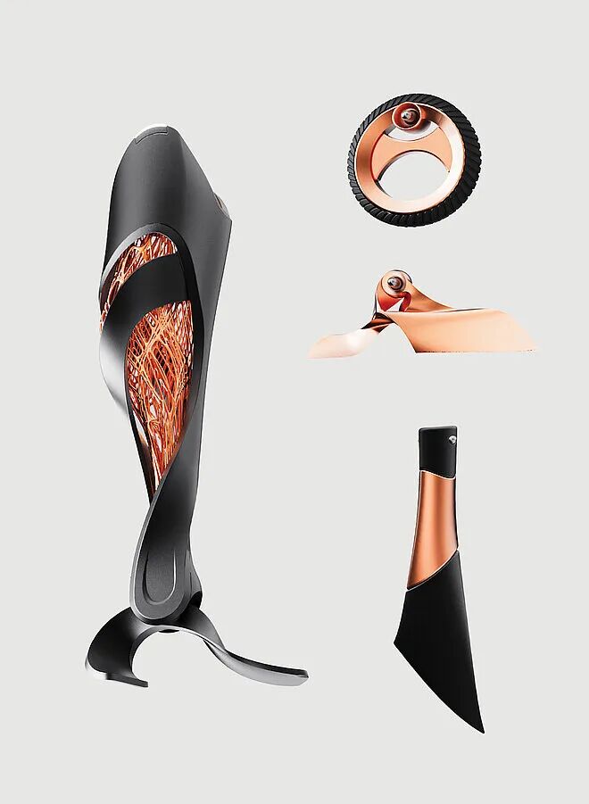 FFATE 是一款高性能假肢,专为从事体育运动的膝下截肢者设计。FFATE 采用外部外骨骼,其形状符合腿部的自然轮廓,从而呈现出强劲而动感的外观。其核心特点是采用先进的 3D 打印技术,生成一个灵活的纤维状内层,复制用户的肌肉结构。该结构模拟自然的肌肉运动,可随运动伸展,吸收冲击力,并帮助用户快速适应新的假肢。