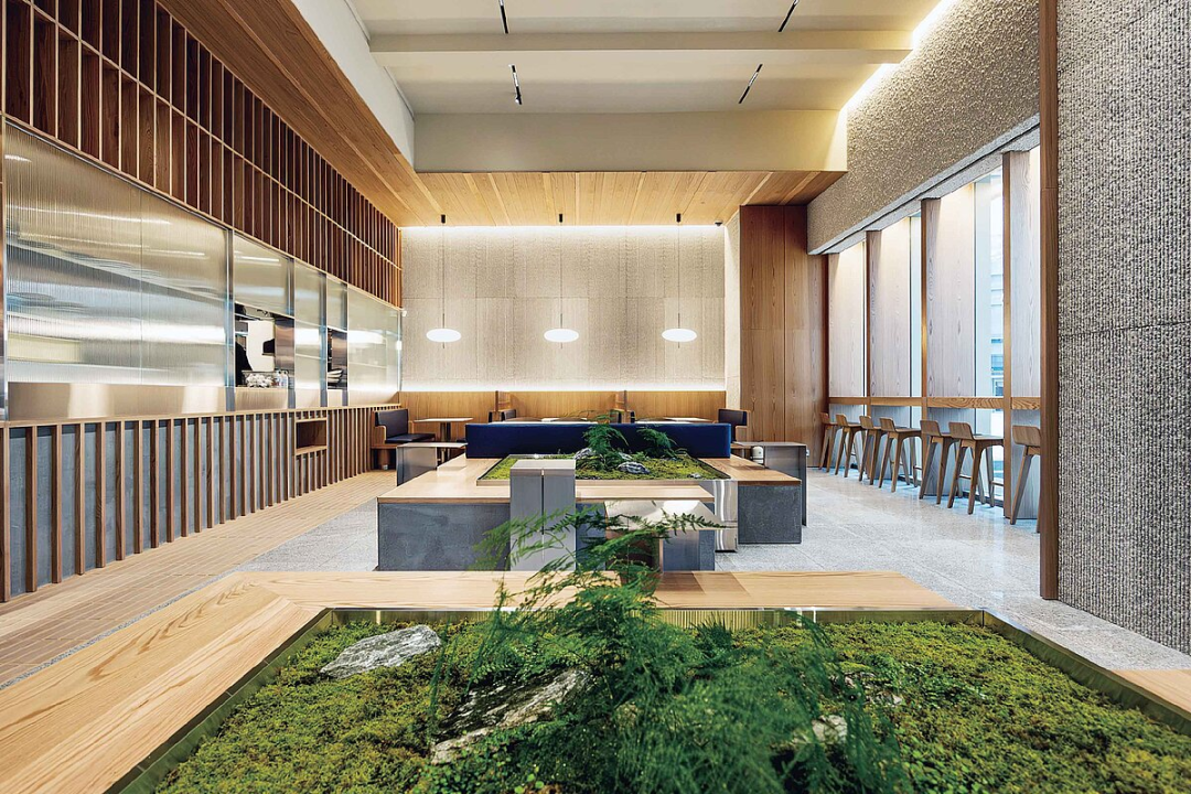 首尔的大型办公楼景观以灰色建筑和混凝土道路为主。Lusso 着手创建一个避难所——一个让人们从这个没有自然的贫瘠和无色环境中解脱出来的空间。Cafe Lusso 设计的核心是一个坐落在城市丛林中的小花园,这是一个空间的礼物,它提供了一个私密的、精神恢复的环境,并缓解了上班族的疲劳。