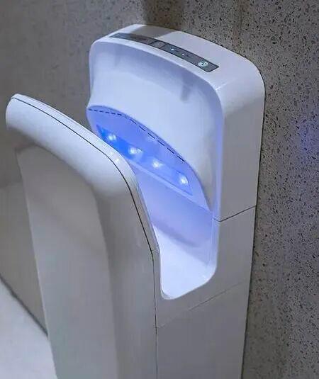 卫生间里常见的干手机有两种类型:暖风干手机和喷射式干手机。