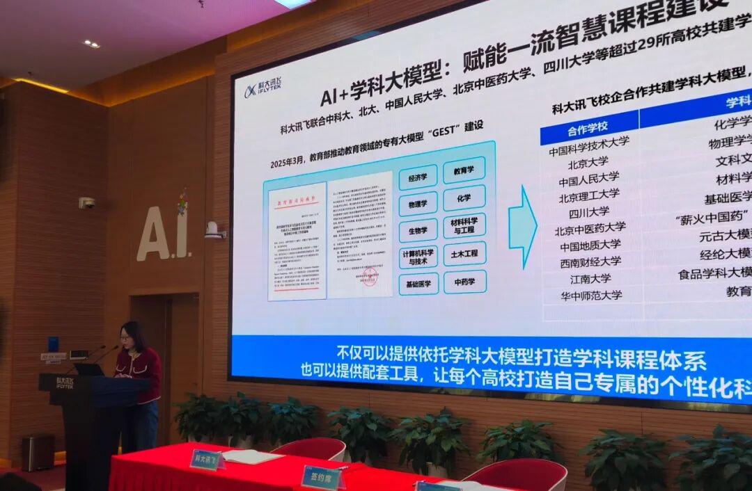 座谈会期间,我校中药学院副院长徐冰、科大讯飞高教研究院副院长王玉泽分别围绕中医药智慧教育体系构建与大模型技术赋能作了主题汇报,介绍了“薪火中国药”中医药教育专用大模型建设推进情况,详细阐述了作为全球领先、中国特色、自主可控的中医药教育智思体,以及其强大的“助学、助教、助研、助管、助国际交流”五位一体的教育服务功能。最后,与会人员就合作内容进行了深入交流,并共同见证了合作框架协议的签署。