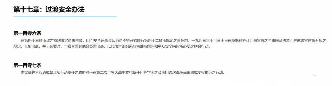 该条款明确,一旦德意日等战败国再度实施侵略,战胜国无需安理会授权,即可直接采取军事行动。