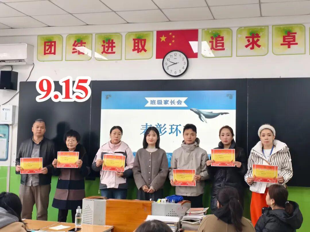 最激动人心的环节莫过于颁奖典礼。在激昂的乐曲和热烈的掌声中,班主任和科任老师为获得 “年级标兵”“榜样之星”“进步之星”“学科之星” 等荣誉的学生家长,颁发了属于孩子的获奖证书。