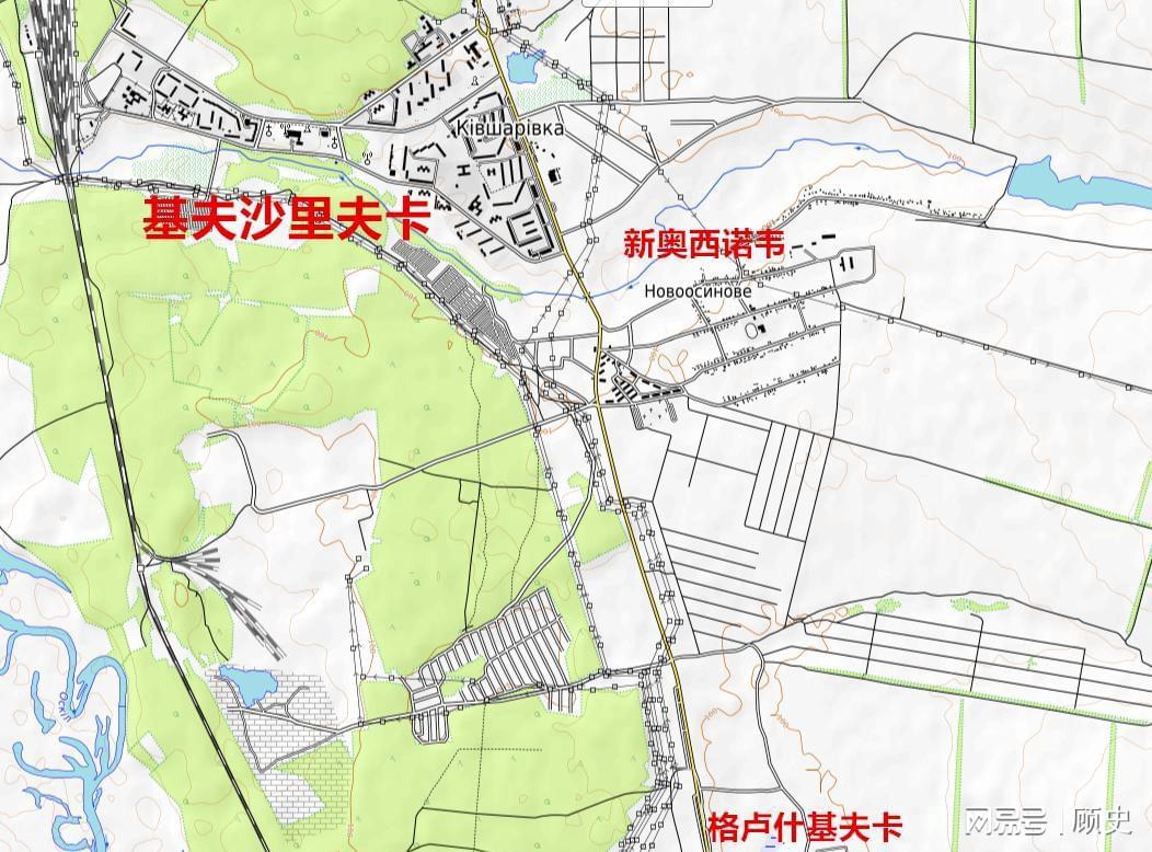 基夫沙里夫卡以南是新奥西诺韦,其战前人口近2000人,也是一个小镇级别;而且该镇与基夫沙里夫卡仅一河之隔,实际就是一个城。