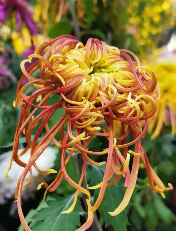 菊花,色泽丰富,形态各异,目前已达数千种。本次展出的只有三百余种,我所看到的更是其中的一小部分。但观赏之余,感慨良多。其中感到它与众不同的是,在秋风萧瑟百花凋零之际,却不畏严寒,凌霜而开。即使到了生命的尽头也抱枝而枯,永不凋落,呈现出一种抱残守缺之美。