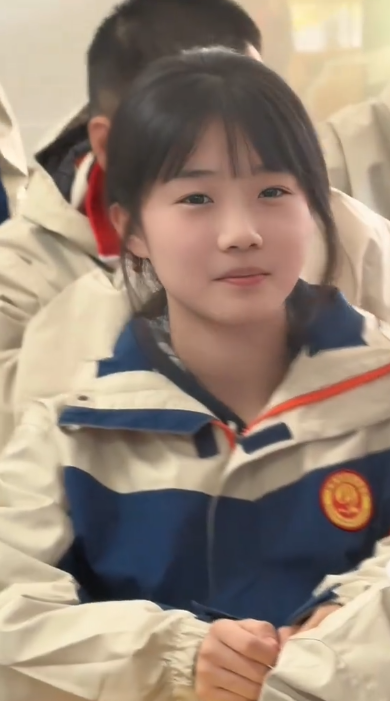 女生的长相和气质,就是保护欲和娇羞感的天花板。仔细看,虽然说天花板有些夸张,但确实很乖巧,符合我们对青春期小姑娘的甜美标准。