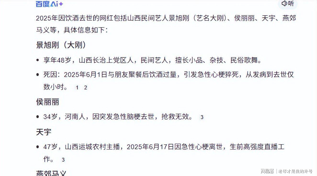 2024年4月,以豪饮著称的“雨哥”突发脑梗去世,年仅35岁;十天后,以品酒知识分享为主的“飞飞一杯酒”也因突发性心脏病离世。