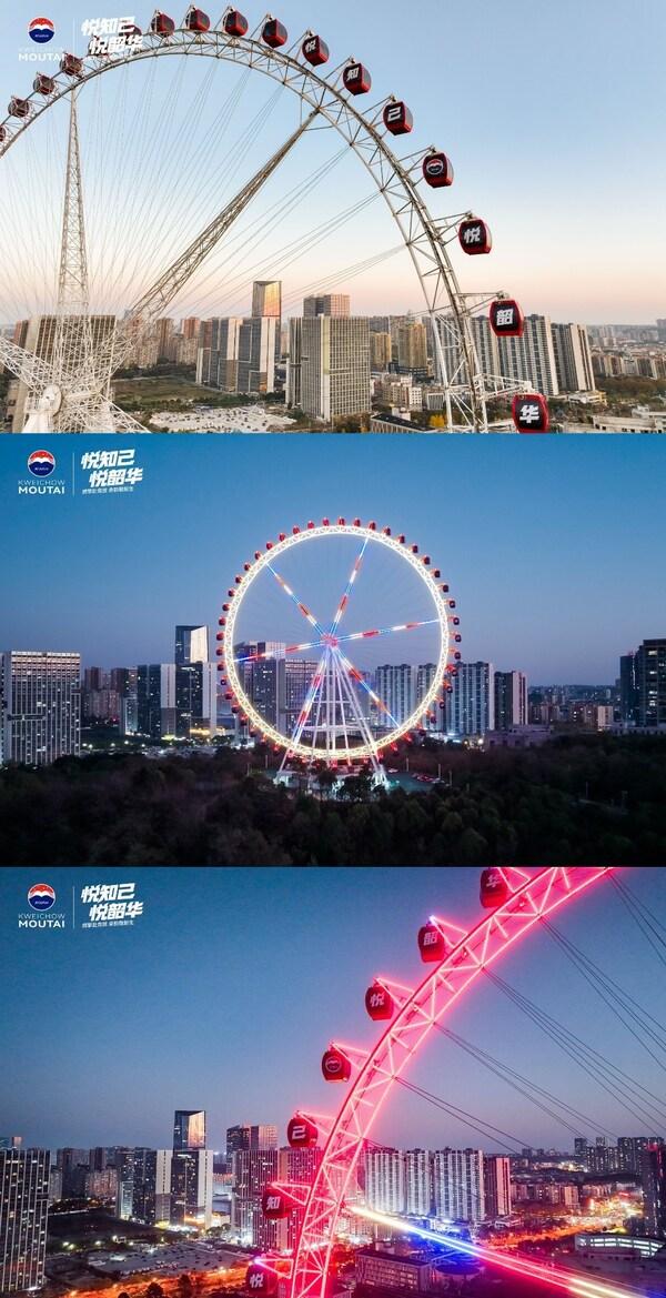 活动现场以茅台经典红白为主视觉,凝练"韶华"主题意象,打造兼具奢雅格调与潮流张力的品牌体验空间。四辆全车定制贴膜赛车成为绝对视觉焦点——两辆丰田GR86 Super与两辆小米SU7 Ultra,将茅台经典Logo与品牌图腾无缝融合,让百年酱香符号与极速竞技载体碰撞出震撼跨界美学;夜幕降临,摩天轮点亮红、白、蓝三色灯光,"悦知己 悦韶华"主题字样格外亮眼,与赛车遥相呼应,为这场"速度与激情"的盛会铺就潮流底色。