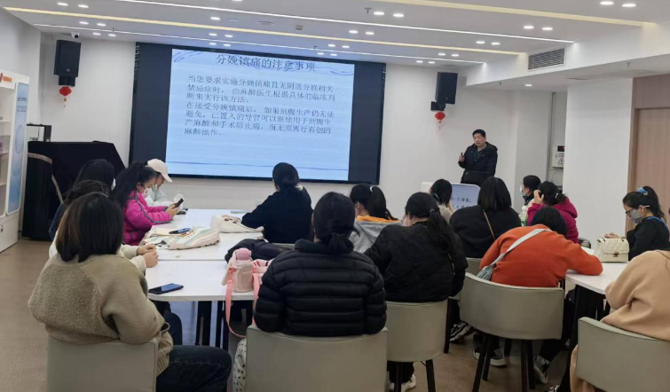 课堂上,王主任用通俗幽默的语言,将无痛分娩的适用条件、操作流程、安全要点等专业内容娓娓道来。针对孕妈们最关心的“无痛分娩安全吗?”“会影响胎儿吗?”“产后会留后遗症吗?”等核心疑问,王主任逐一拆解,用扎实的医学知识和丰富的临床经验,打破“无痛分娩伤神经”“导致产后腰痛”等认知误区,让孕妈们清晰了解无痛分娩的安全性与适配场景。