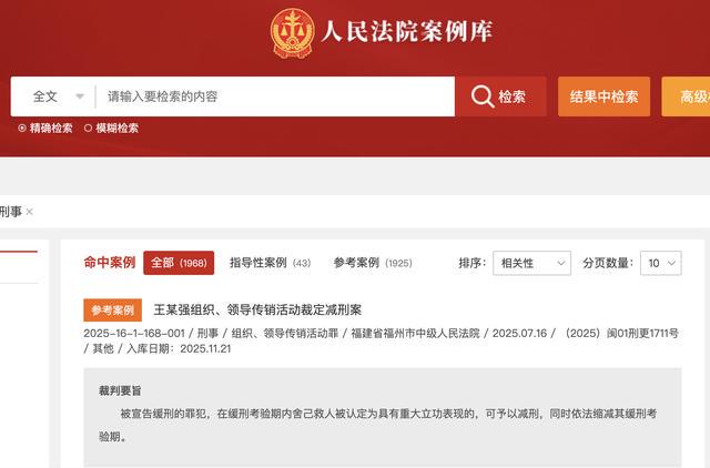 近日,人民法院案例库公布一则参考案例:王某强组织、领导传销活动裁定减刑案——缓刑犯因舍己救人具有“重大立功表现”的,可予以减刑并缩减缓刑考验期。