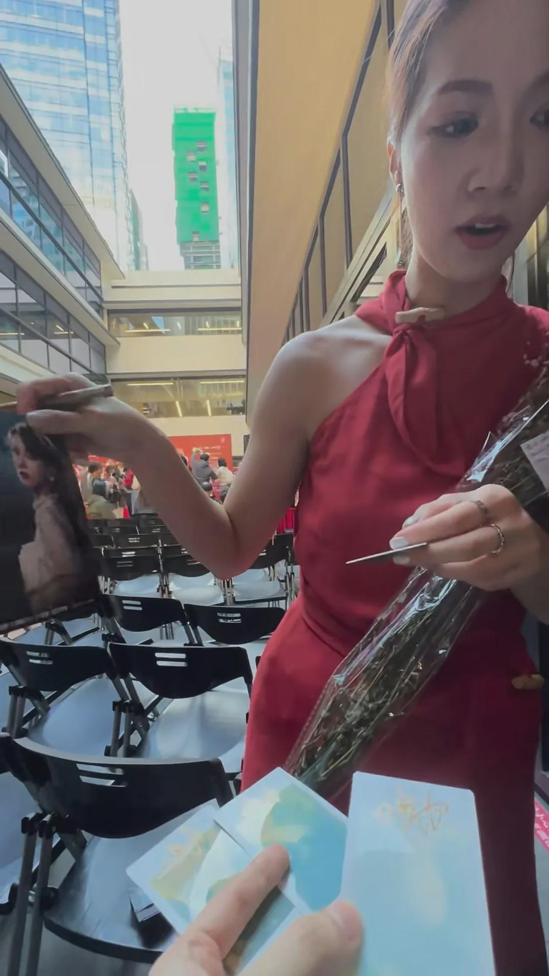 陳曉華不但沒有黑臉,還一一為粉絲簽好名。(小紅書截圖)