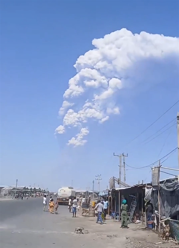 2025年11月23日中午,位于埃塞俄比亚东北部埃尔塔阿莱火山附近的海利古比火山发生剧烈喷发。这是该火山在一万多年以来首次有记录的喷发活动。