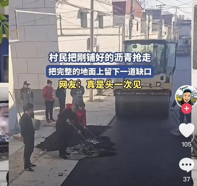 最后村支书好说歹说,才让他们把铲走的沥青倒回去,施工队又花了俩小时补平路面。