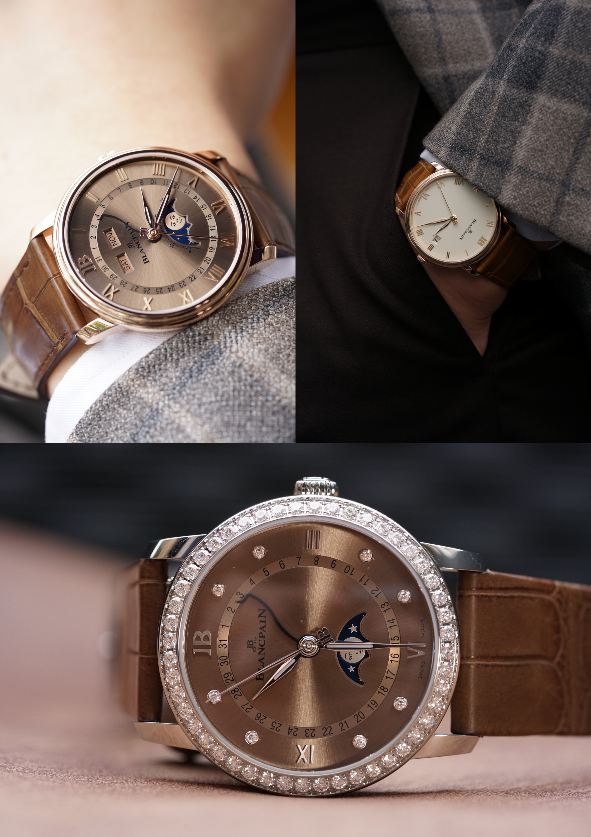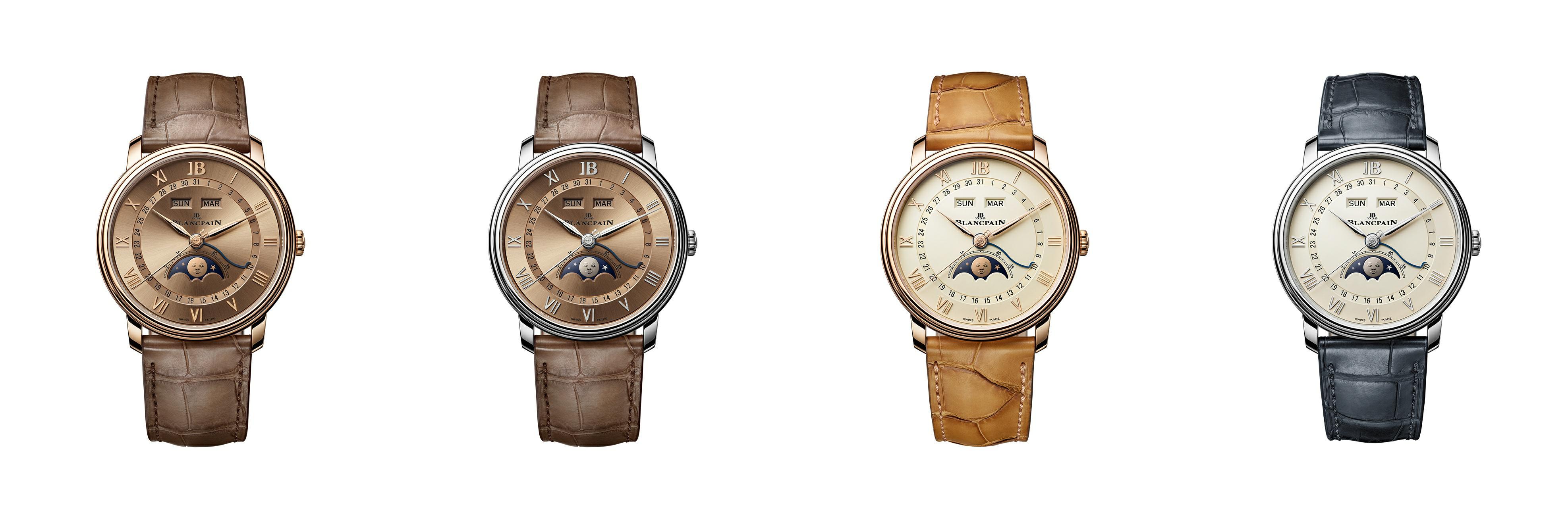 宝珀经典V系列腕表新品从右到左:6126N“月亮美人”日历月相腕表、