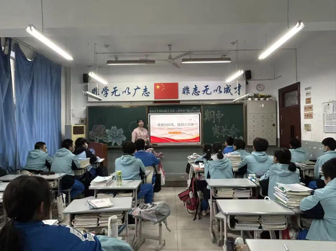 大会缓缓落下帷幕,但激昂的誓言仍在校园回荡,奋斗的火种已在心中点燃。回到教室后的同学们随即召开了以“拼搏200天,扬眉六月巅”为主题的班会。