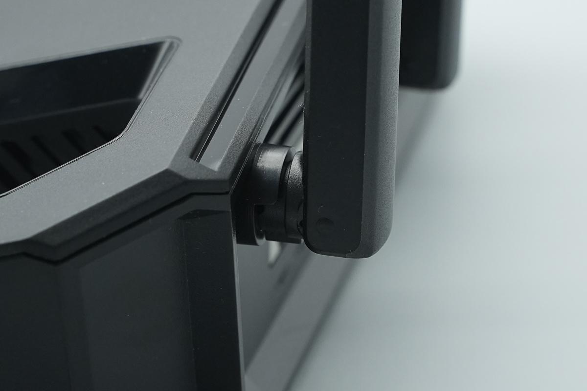 路由器机身后方设有天线,机身左右两侧为镂空设计,提升散热能力。