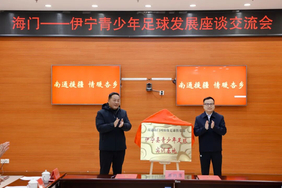 11月21日上午,海门-伊宁青少年足球发展座谈交流会在伊宁县举行。南通市海门区与新疆伊宁县两地领导,以及相关部门、企业、俱乐部和球员代表齐聚一堂。