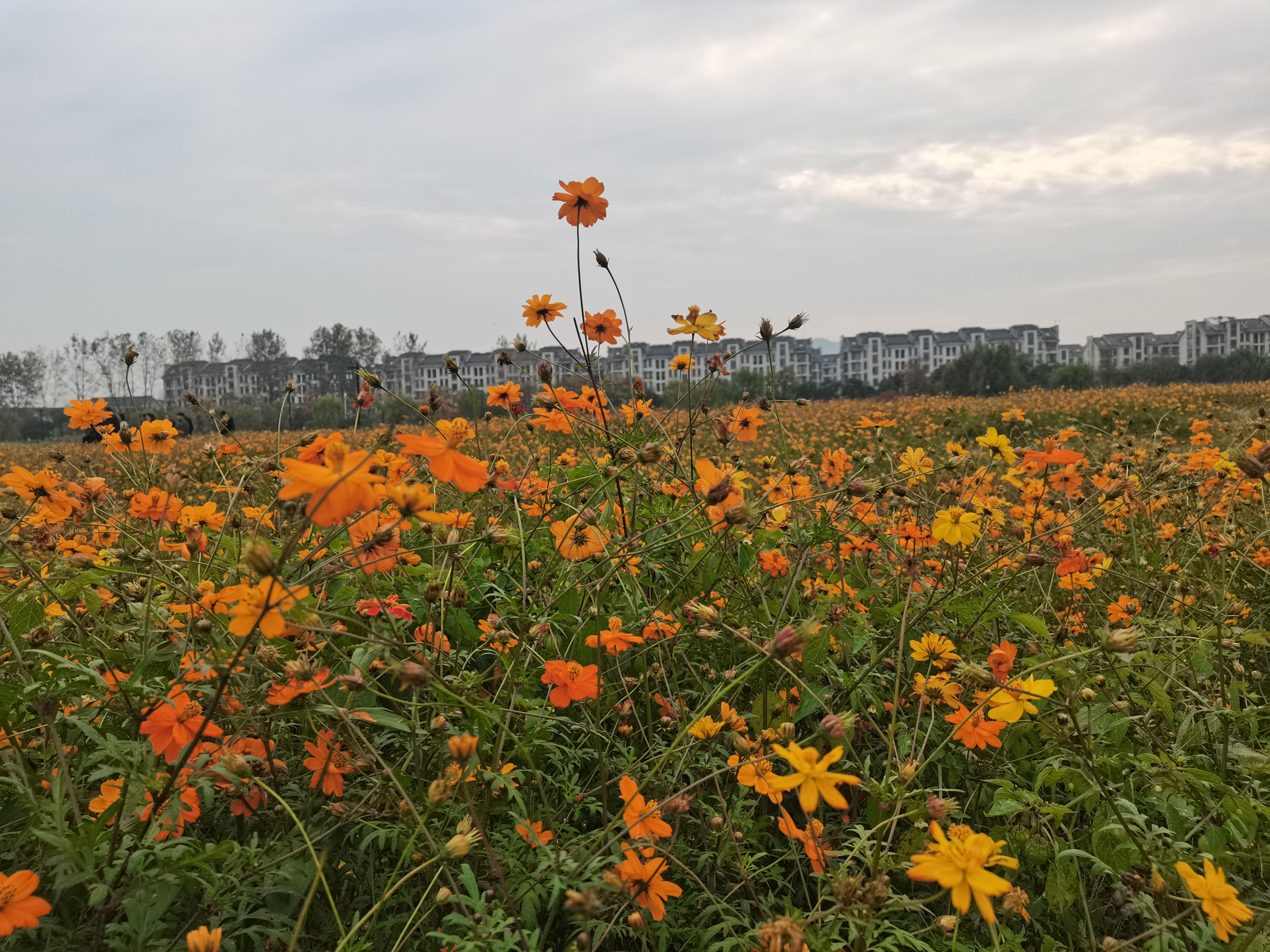 主要是各种小菊花,波斯菊、百日菊、黄秋英等,黄红粉紫橙等,色彩斑斓。