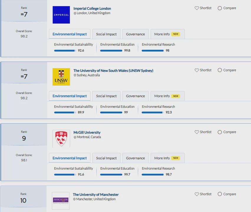 这个可持续发展的世界大学榜单主要是聚焦可持续发展议题,不再是把数据指向传统的学术和演技指标上,内容会覆盖环境影响,社会影响,以及治理这三个大类别。