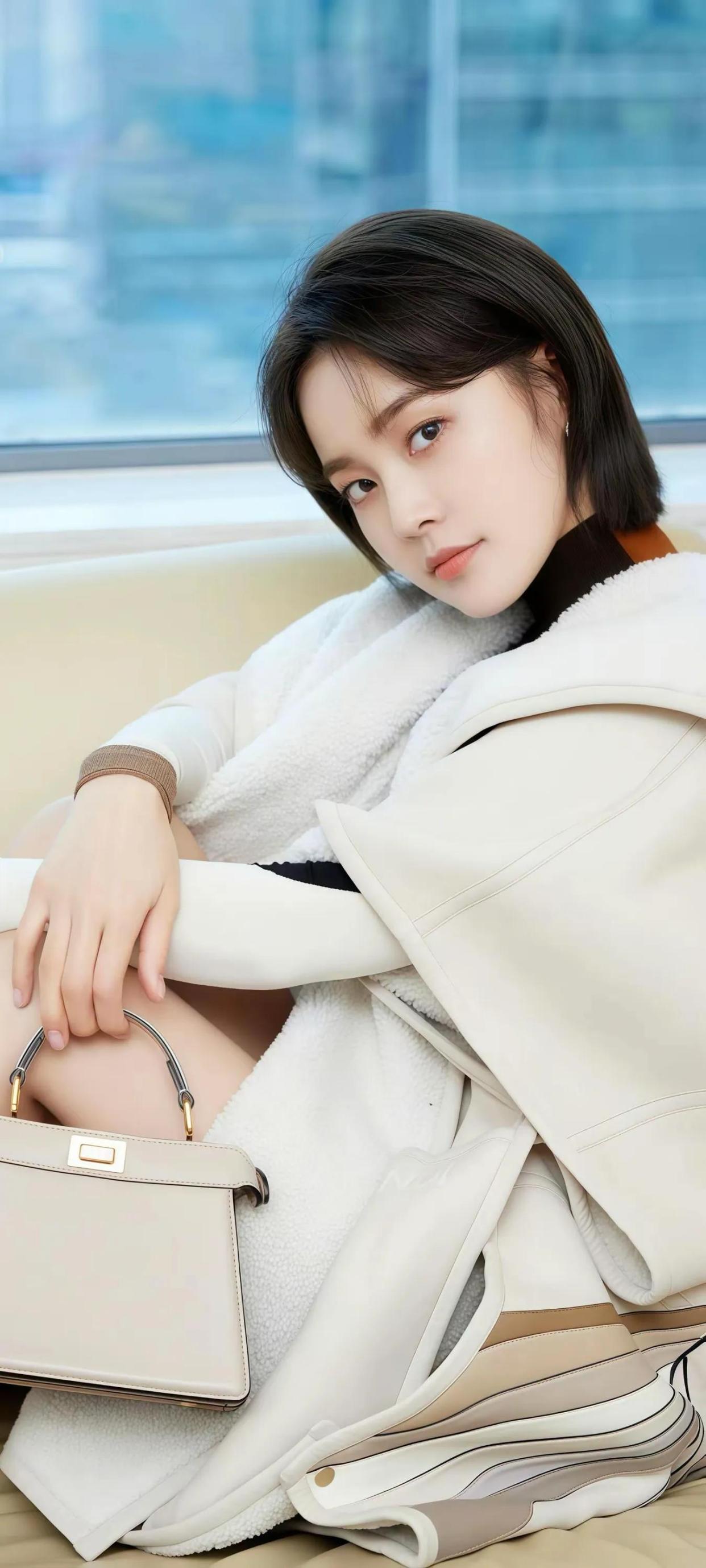 她的美是带着呼吸的。当微风拂过她海藻般蓬松的秀发,发丝便在空中划出优雅的抛物线,如同被无形指挥家引领的黑色乐章。嘴角自然上扬的弧度,让人想起新月初升时那道完美的银钩,既不过分甜腻,又恰到好处地漾着暖意。