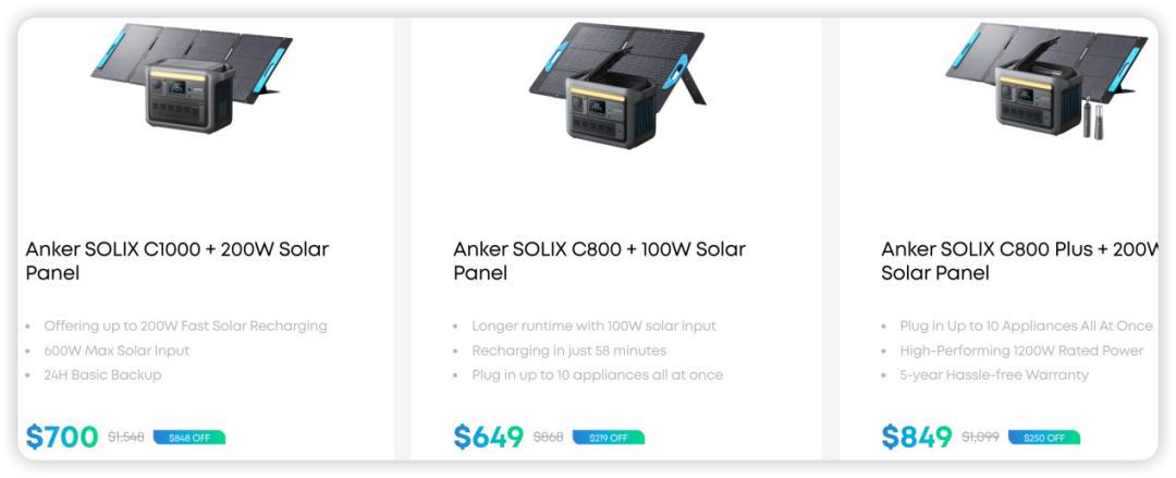Anker则是另一类打法。作为消费电子领域的老牌玩家,它本身在充电宝、快充头等产品上,积累了庞大的用户群和渠道优势。近年来,Anker借助这些优势切入更大型的便携电源市场,推出了 SOLIX / PowerHouse系列产品。它的思路是用普及款和稳定的售后服务,切入家庭备用和日常大功率场景,整体上在复刻Anker充电产品的发展路径。