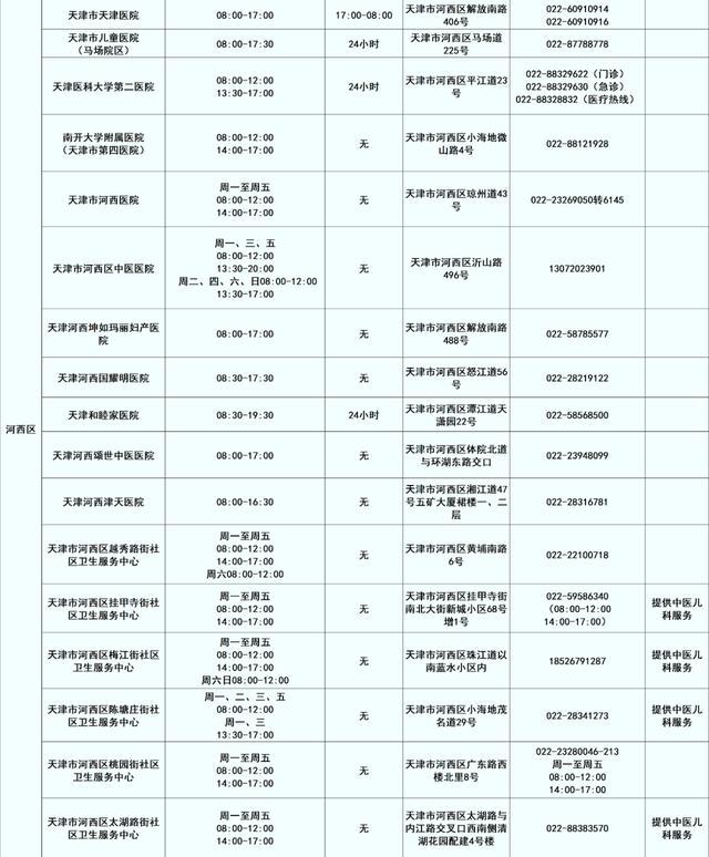 2025年天津市各有关医疗机构儿科诊疗信息