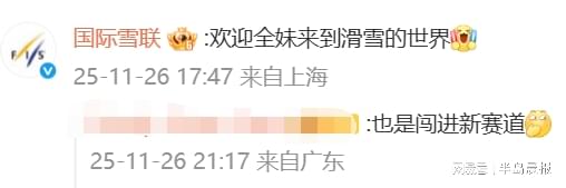 26日,全红婵在个人社交平台上发布了自己的滑雪视频,虽然只有11秒,但全妹态度坦荡,放出自己在雪道上摔跤又摔跤的场面。