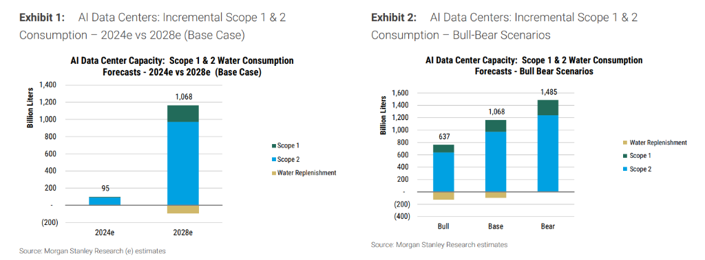 数据中心是极其依赖物理资源的实体,摩根士丹利的模型显示,AI数据中心的“干渴”程度正在以惊人的速度增长。