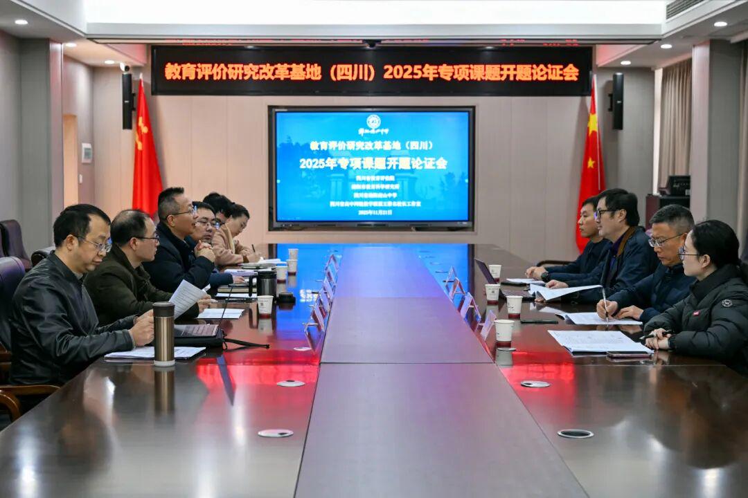 近日,教育评价改革研究基地(四川)2025年专项课题开题论证会在我校成功举行。此次论证会邀请到了以四川省教育评估院教育监测评估研究所所长、正高级教师尧逢品和绵阳市教育科学研究所副所长朱殿庆为代表的专家组。经专家组论证,由四川省高中网链教学联盟王黎名校长工作室领衔人,四川省绵阳南山中学党委副书记、校长王黎负责的课题《基于教育家精神的高中教师多元评价体系建构和实践研究——以四川省绵阳南山中学为例》(课题组成员:宋熹曦、毛永辉、魏玉健、李晓明、王强)成功开题。