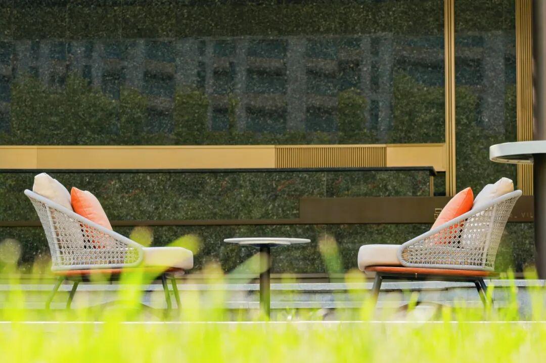 与草坪廊架对望的林下会客厅,让社交从室内延伸到室外,隐匿在自然之间,是极佳的下午茶举办地——约上三五好友,带上刚出炉的马卡龙,在绿荫树下,就这秋日的暖阳,打盹、喝茶、闲聊,平凡的下午便满溢草木花香。