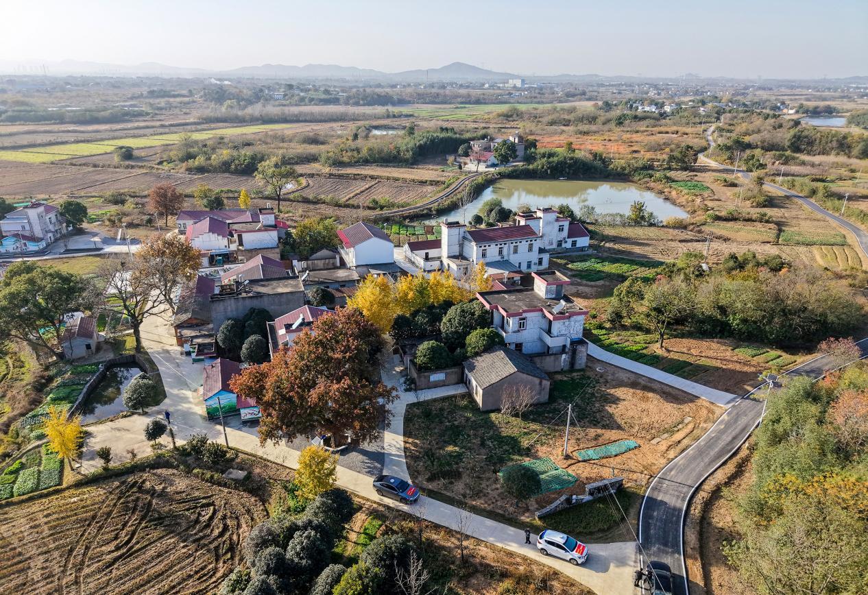 2025年11月25日,在安徽省合肥市庐江县冶山镇,农村人居环境整治后的大岗村景色宜人、风光旖旎,特色民居与洁净的环境构成了一幅冬日和美乡村画卷。