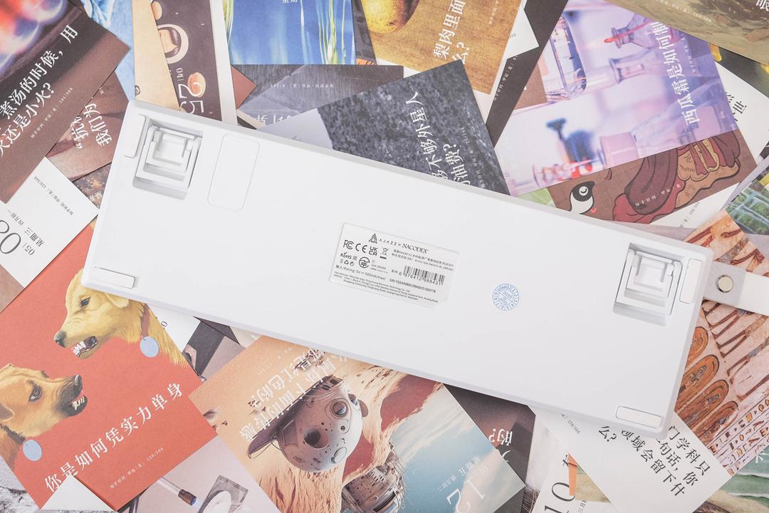 我这款是等高线白配色的版本,颜色很个性,键帽是PBT材质,耐磨不打油。最特别的是侧面那个飘带设计,可以自己拆换,后期如果想换个颜色或者DIY一条专属飘带,完全没问题,给桌面搭配增加了很多乐趣。