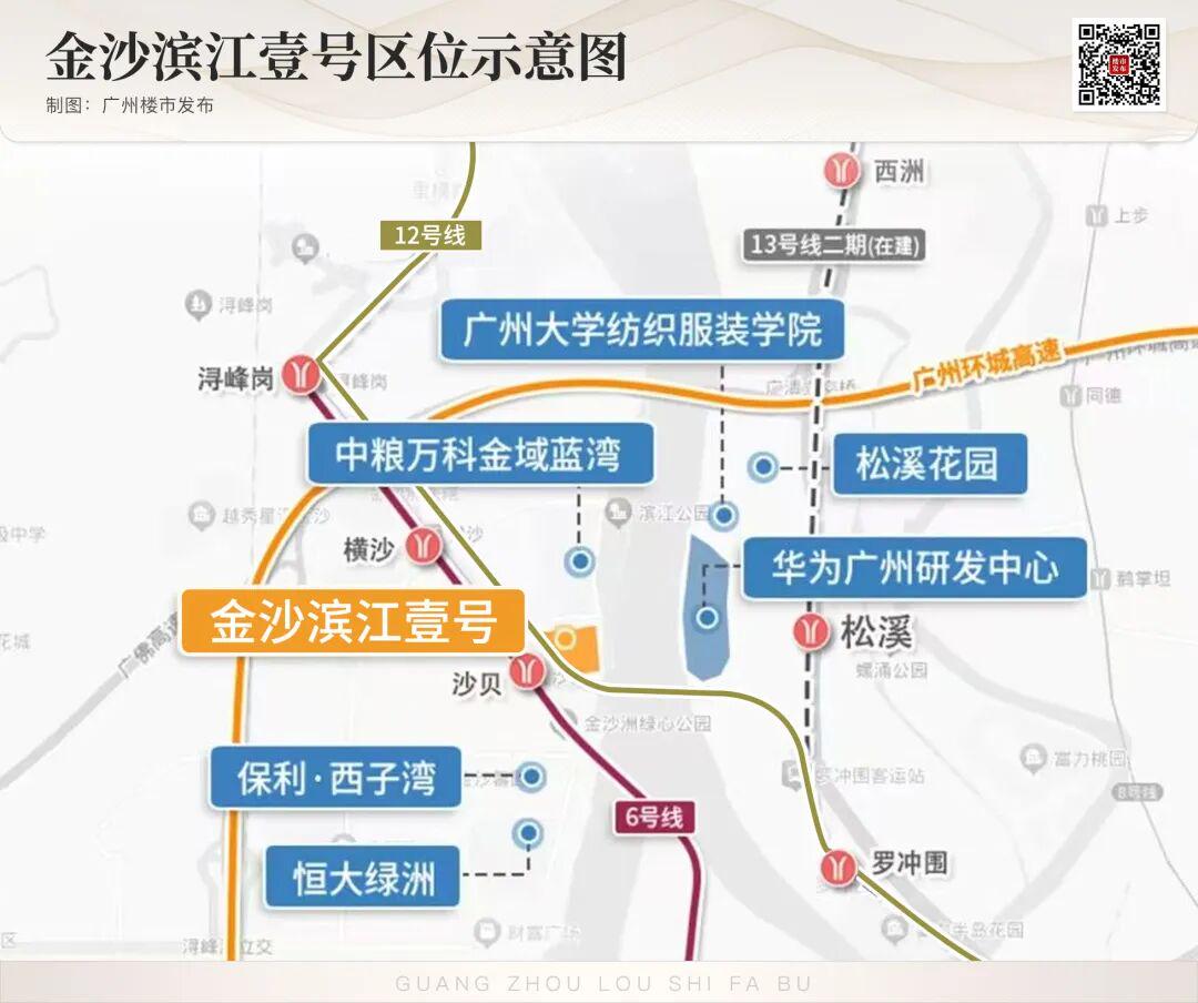 这位业主提到的滨江壹号,位于白云金沙洲板块,紧邻地铁6号线沙贝站。华为广州研发中心就在该小区对面。