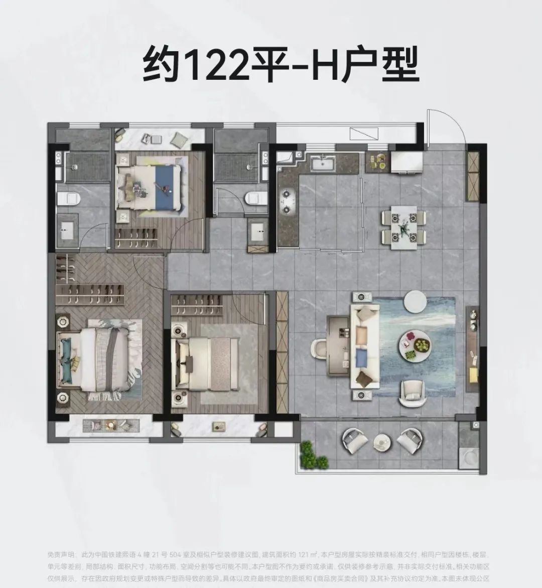 建面约121㎡样板实景示意图