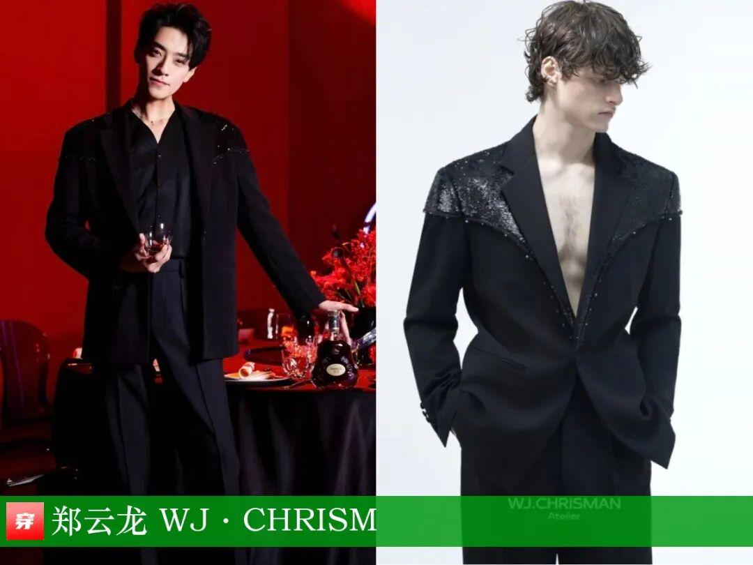 郑云龙,品牌发布会。黑色亮片拼接西装:WJ·CHRISM。