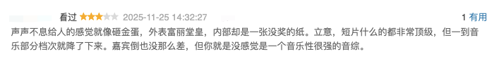 芒果应该是考虑到了综N代的极限,在今年推出了新的音综IP《声鸣远扬2025》,不过这档节目仍然没有放下对经验的依赖,套上多年前的选秀模板,鸡飞狗跳的海选、伶牙俐齿的导师、随意的赛制,却没能赢得市场的关注,播出一个多月也未能出现出圈的话题与热度。