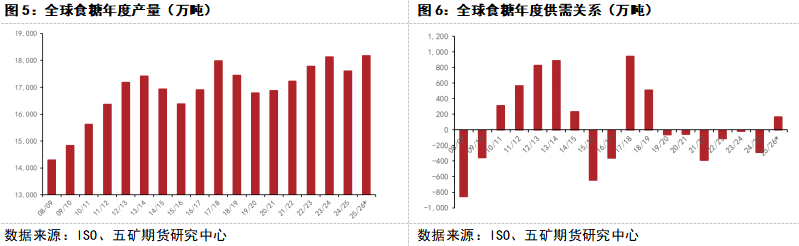 据国际糖业组织(ISO)最新预测,2025/26榨季全球糖产量将增长3.15%,达到1.8177亿吨;而消费量仅增长0.6%,为1.8014亿吨;2025/26榨季全球食糖将出现163万吨的过剩,而2024/25榨季则是存在292万吨的缺口。从目前主要产糖国产量预估,以及全球供需情况预估来看,直到明年一季度,国际糖价可能难有太大的起色。