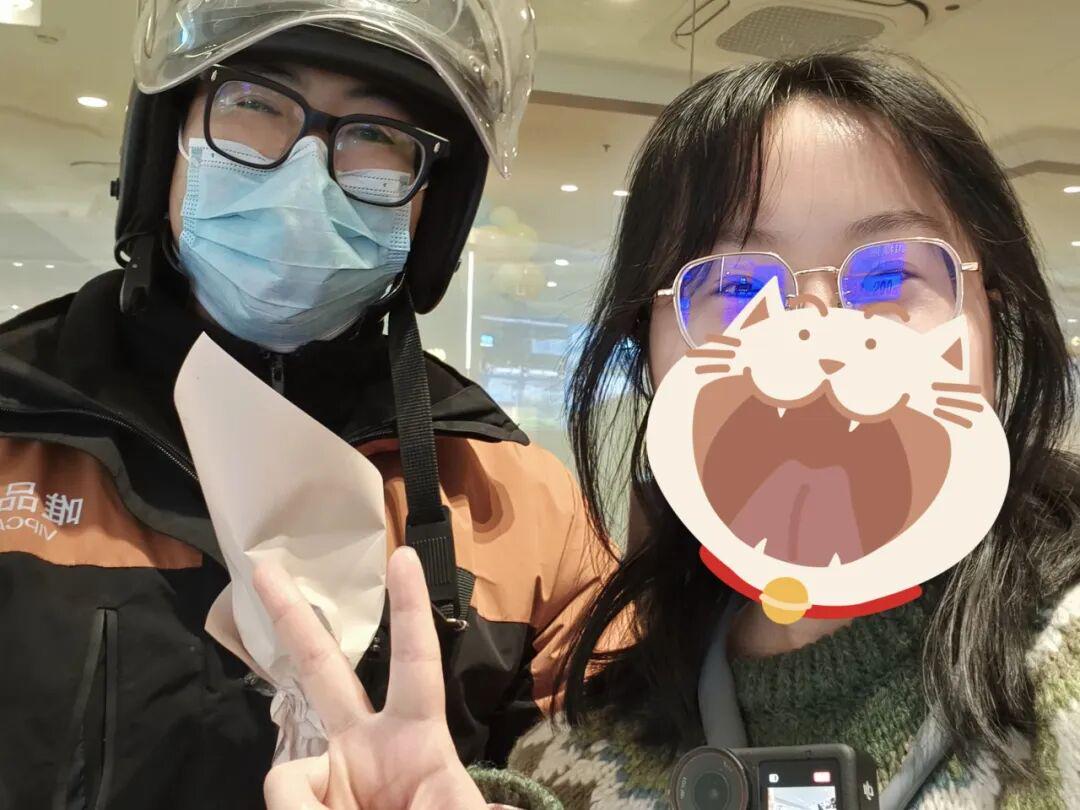 心理建设了很久迈出了第一步,就如照片上一样,第一束花送给了给我运送蛋糕的快递师傅。看到他拿到花震惊又很快乐笑容,那一刻我觉得我这个想法做对了!!!之后更加勇敢去送给下一个,剩下的花都分给了海底捞工作人员及其一些吃火锅的顾客。