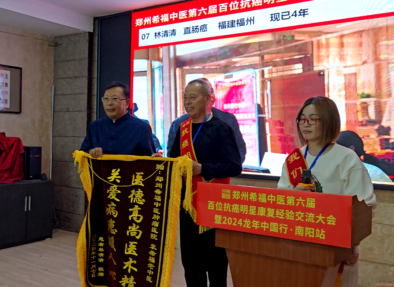 2024年11月7日,林师傅和女儿一起参加了“郑州希福中医第六届百位抗癌明星康复经验交流大会暨2024龙年中国行南阳站”公益活动,并在台上分享了自己的经历。也就是在这次活动中,看到那么多抗癌病友,他才真正知道自己得的是癌症。