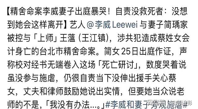 然而,随着李威妻子的出庭作证,她的情感表现成为了舆论焦点。