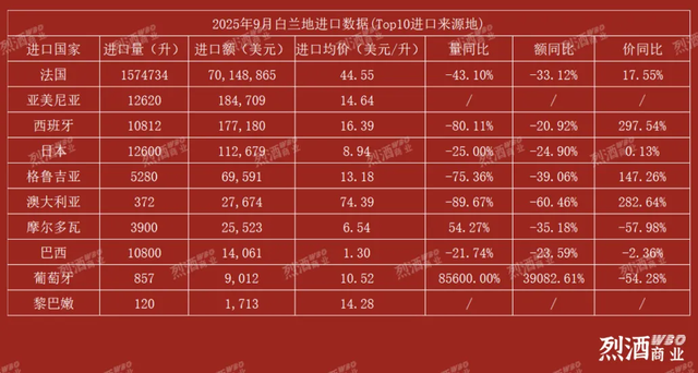 业内普遍认为,这一反弹态势具有明显的季节性特征,后续走势将取决于终端市场的实际动销情况。关键是欧盟白兰地反倾销影响持续,海关最低限价令部分进口商进货动力不足,叠加“限酒令”对市场的持续影响,整体需求仍受制约。毕竟同比去年10月白兰地进口数据,依旧呈现量额下跌的趋势。