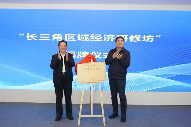 上海立信会计金融学院党委副书记、院长杨力,党委副书记尹晨,中共上海市金融工作委员会原书记、上海金融业联合会原常务副理事长季文冠共同为“长三角区域经济研修坊”揭牌。该研修坊自2020年酝酿以来逐步成熟,将作为“政产学研媒”学习研究型组织,成为推动区域经济研究、促进协同创新的重要平台。