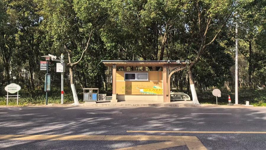 在乡村振兴的宏大图景中,这条线路成为文化传承与产业赋能的双重载体。沿线串联的江海村、沈陆村、六墩村、杨王村均为上海市乡村振兴示范村,通过量身打造的特色站台,各村独特底蕴尽数展现,江海村的良渚文化、沈陆村的红色文化、六墩村的桥文化、杨王村的家文化,让候车与乘车的碎片化时光成为沉浸式文化体验。与南庄路整体风貌相融的其他普通站台,配备了电子屏与公交时刻表,为乘客提供家门口的舒适候车感受。这种“交通+文化”的创新设计,让公交线路本身成为展示乡村魅力的“微型窗口”,助力乡村文化传播与品牌塑造。