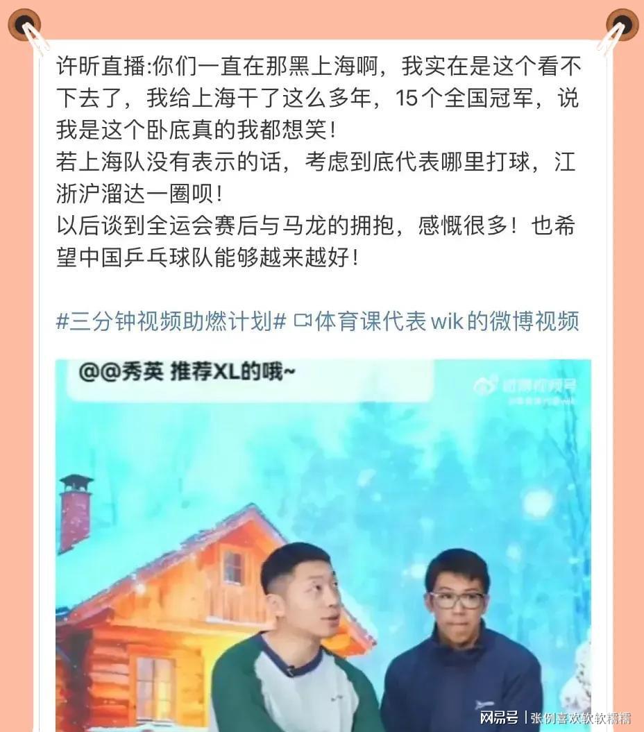 许昕在前天晚上直播的时候也说了很多。