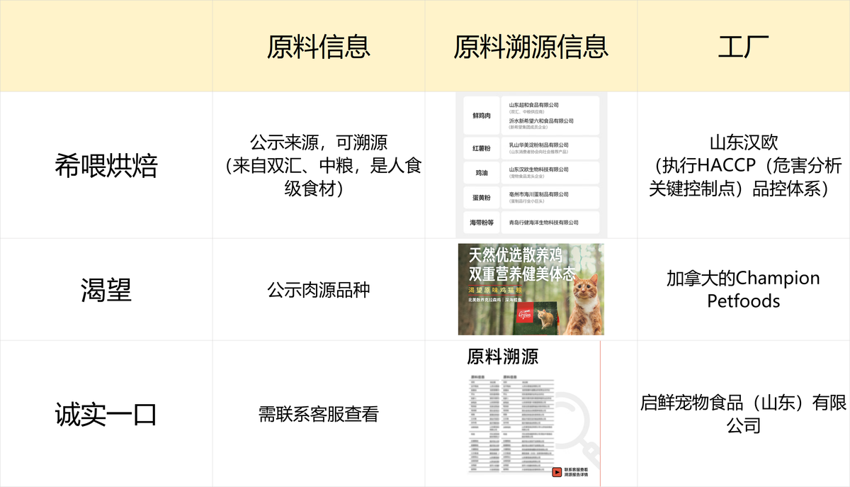 诚实一口猫粮:生产方面,其生产商为启鲜宠物食品(山东)有限公司,该工厂为国内宠物食品行业常规生产企业,具备基础的生产设备与流程规范。品牌未主动公开任何核心食材的供应商信息、产地或品质证明,需联系客服才能查看相关信息。