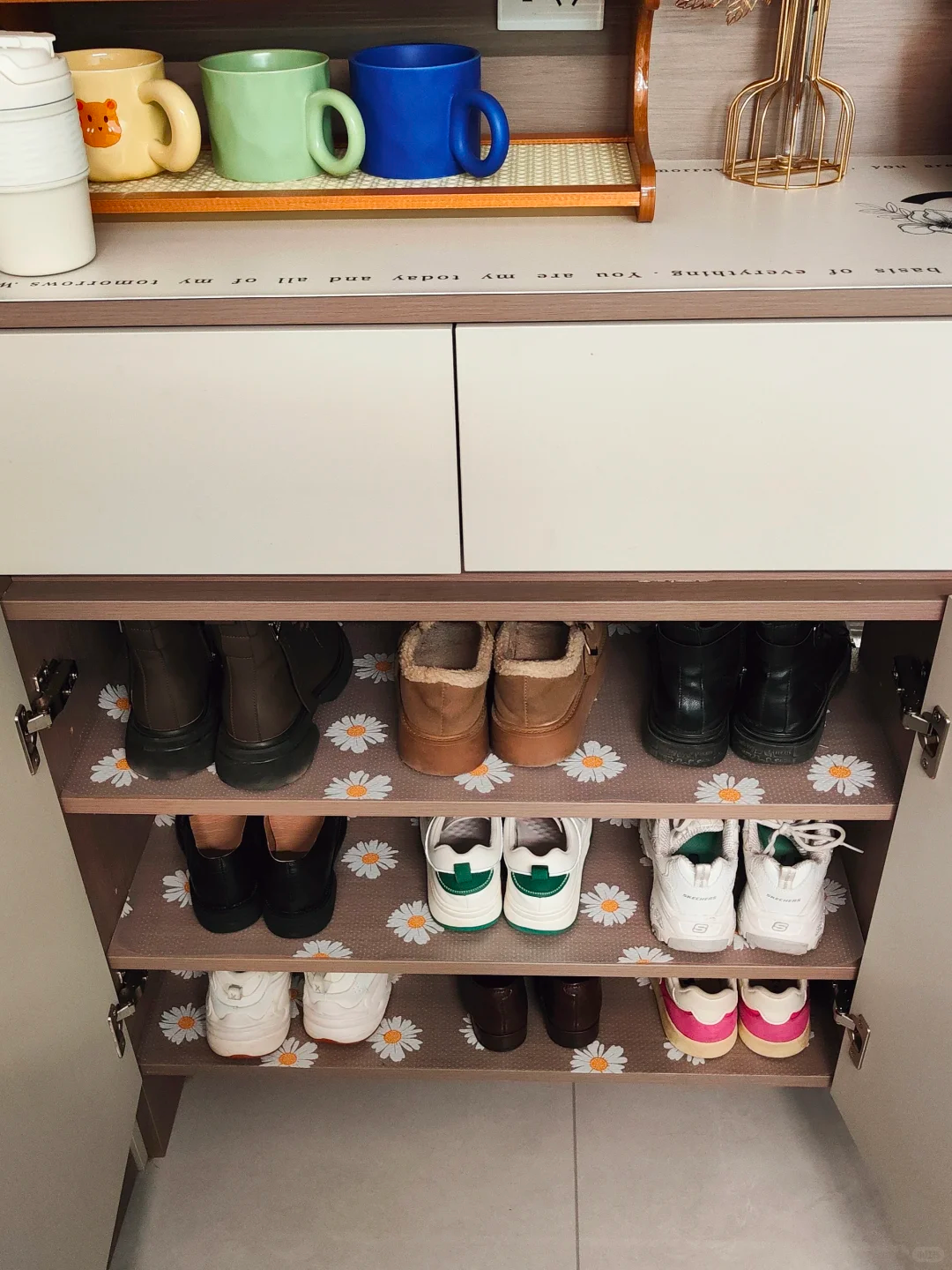 再放进鞋柜里面,不会被弄脏,也不会氧化。再穿的时候取出来还是跟新的一样。这样做,鞋柜里面也整齐多了。