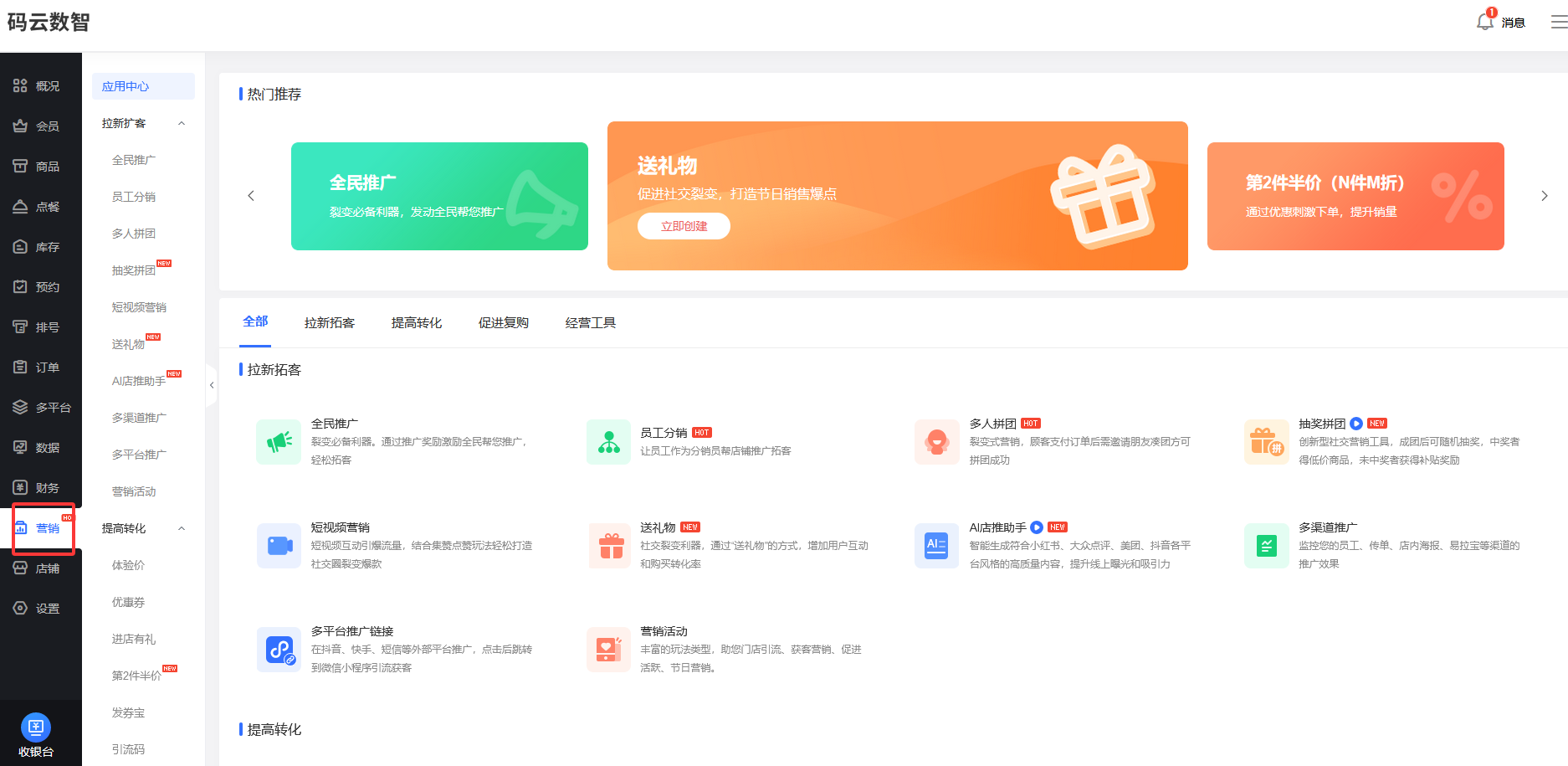 性价比高:价格仅为同类平台的 50% 左右,覆盖扫码点餐、自提外卖、会员积分、裂变分销、生日免单等 40 + 营销工具