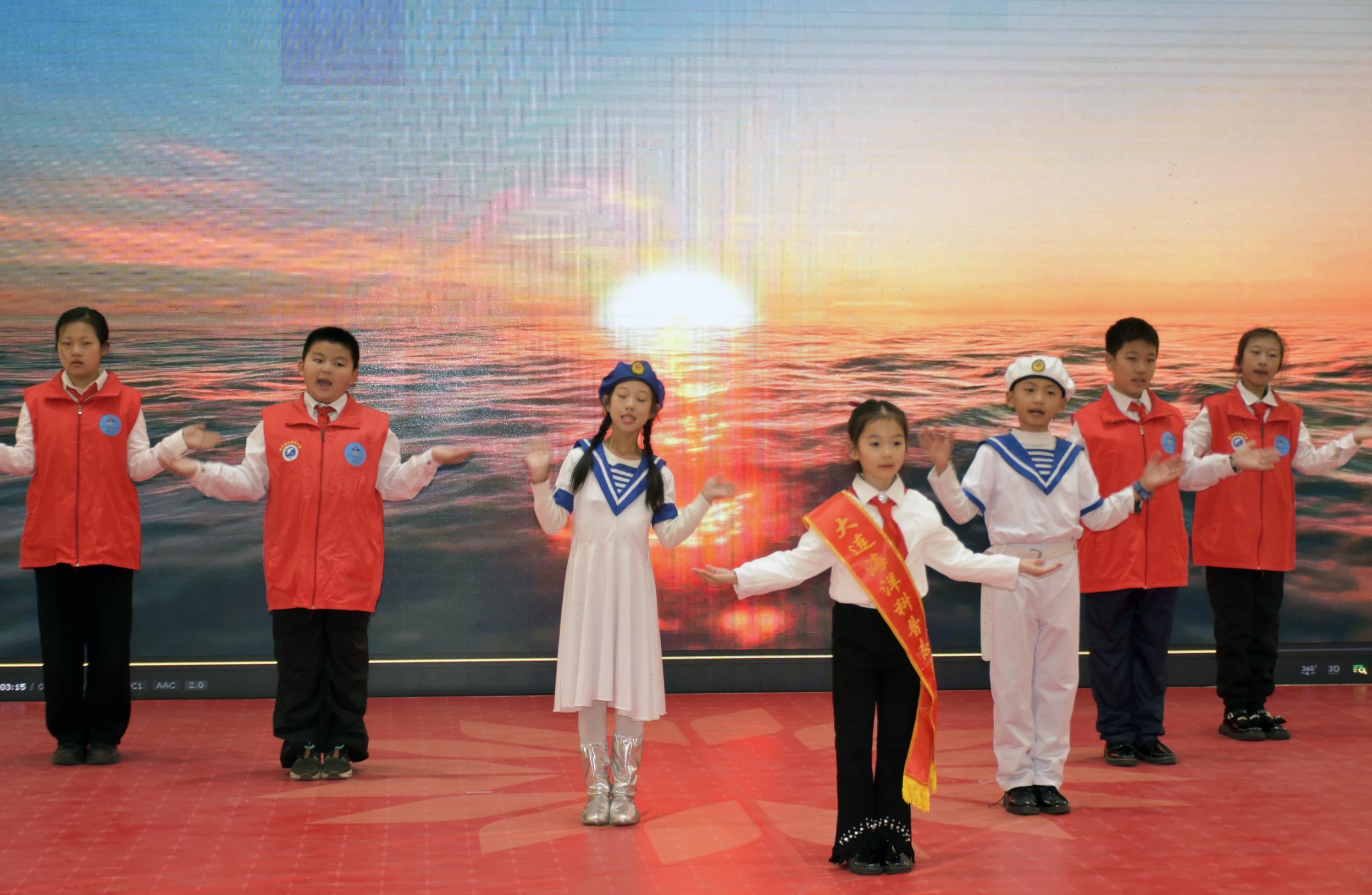文艺展演环节成为传递海洋情怀的重要载体。滨海润德义工站的朗诵《保护地球妈妈》呼吁生态守护,广电童声合唱团的《大鱼》婉转诠释海洋之美,甘井子老年大学的成人小提琴合奏《爱大连,爱祖国》饱含家国情怀。欣声口才、旅顺关工委、红岩小学等单位带来的《薪火》《祖国是什么》《海蛎子对大连的意义》等节目,从不同维度展现海洋与城市、家国的深厚联结。甘井子少年宫献上的合唱《故乡,我深深爱着你》、中英文朗诵《我爱这片蓝色的家》及小提琴合奏《白马踏浪》,大连海促会义工站的《一个干净的地球》等节目,进一步凝聚了全社会热爱海洋、守护海洋的共识,引发全场观众强烈共鸣。