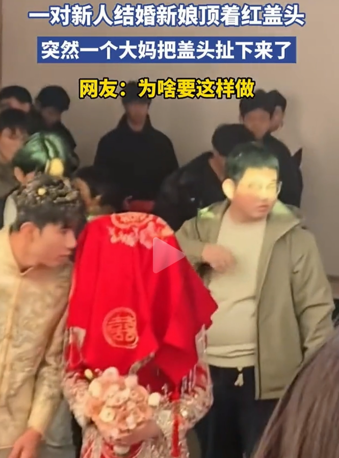 结婚是人生中最郑重的仪式之一,每对新人都期盼一场圆满顺遂的婚礼,在亲友见证下开启新生活。可11月29日山东一场中式婚礼上,突发的一幕却让新人的美好期盼添了遗憾,也让网友们炸开了锅,一名中年大妈突然上前,当众扯下了新娘头上的盖头,现场瞬间陷入尴尬。