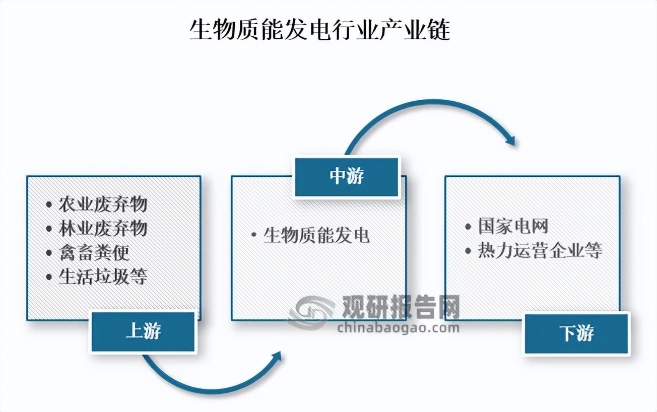 从产业链来看,生物质能发电上游主要为农业废弃物、林业废弃物、禽畜粪便、生活垃圾等生物质原料供应;中游为生物质能发电项目建设与运营;下游为国家电网等供电机构和热力运营企业等。