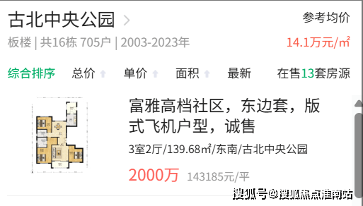 二手市场价格坚挺反映需求缺口。古北99南侧的次新古北中央公园挂牌约14万/㎡;房龄更老的二手挂牌依旧稳定在11-14万/㎡;更别提还有标杆古北壹号,挂牌25万+/㎡。古北99入市均价,较板块内次新房低约两成,着实是坚挺的资产硬通货!